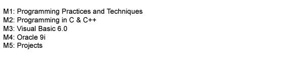 | , | C ++ | Programming in C ++ | 6 Months | Non Matric | 0.00 | ACTIVE | , |