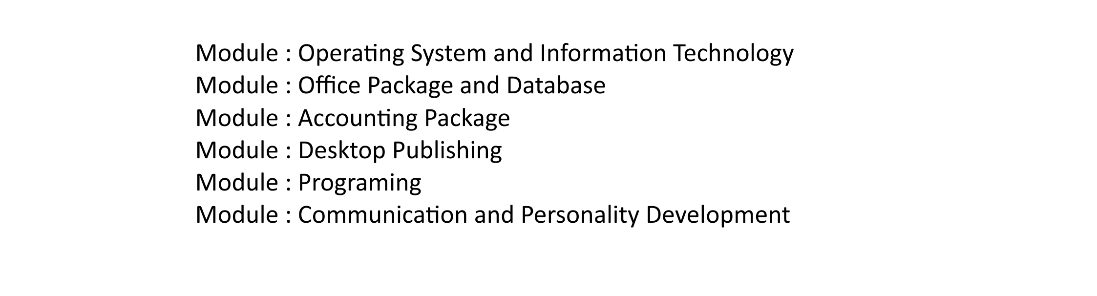 | Computer Typing | Computer Typing | Computer Typing | 6 Months | Non Matric | 200.00 | ACTIVE | , |